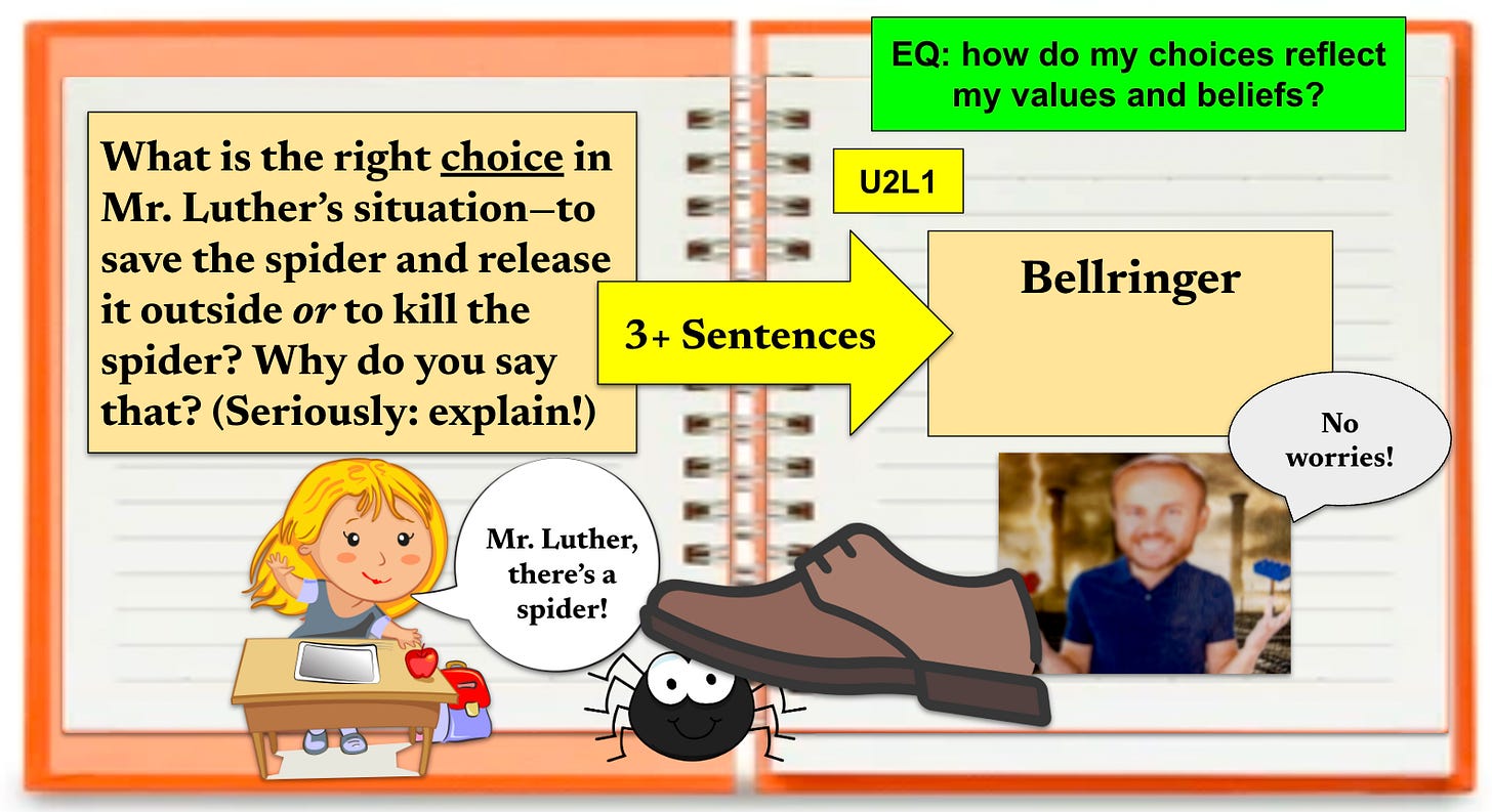 Quite an opening to begin our new unit, right? A fun roast of Mr. Luther along with some entertaining, values-driven commentary that brought the classroom to life much more than any prescribed curriculum lesson would have—and then the real pivot in terms of substance: