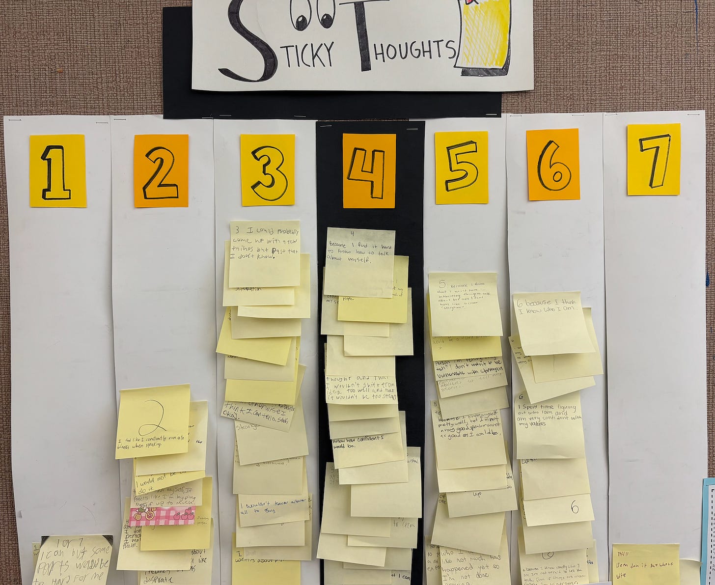 On a sticky note, each student responded by writing down a number 1-7 and then briefly explaining their reasoning for it.