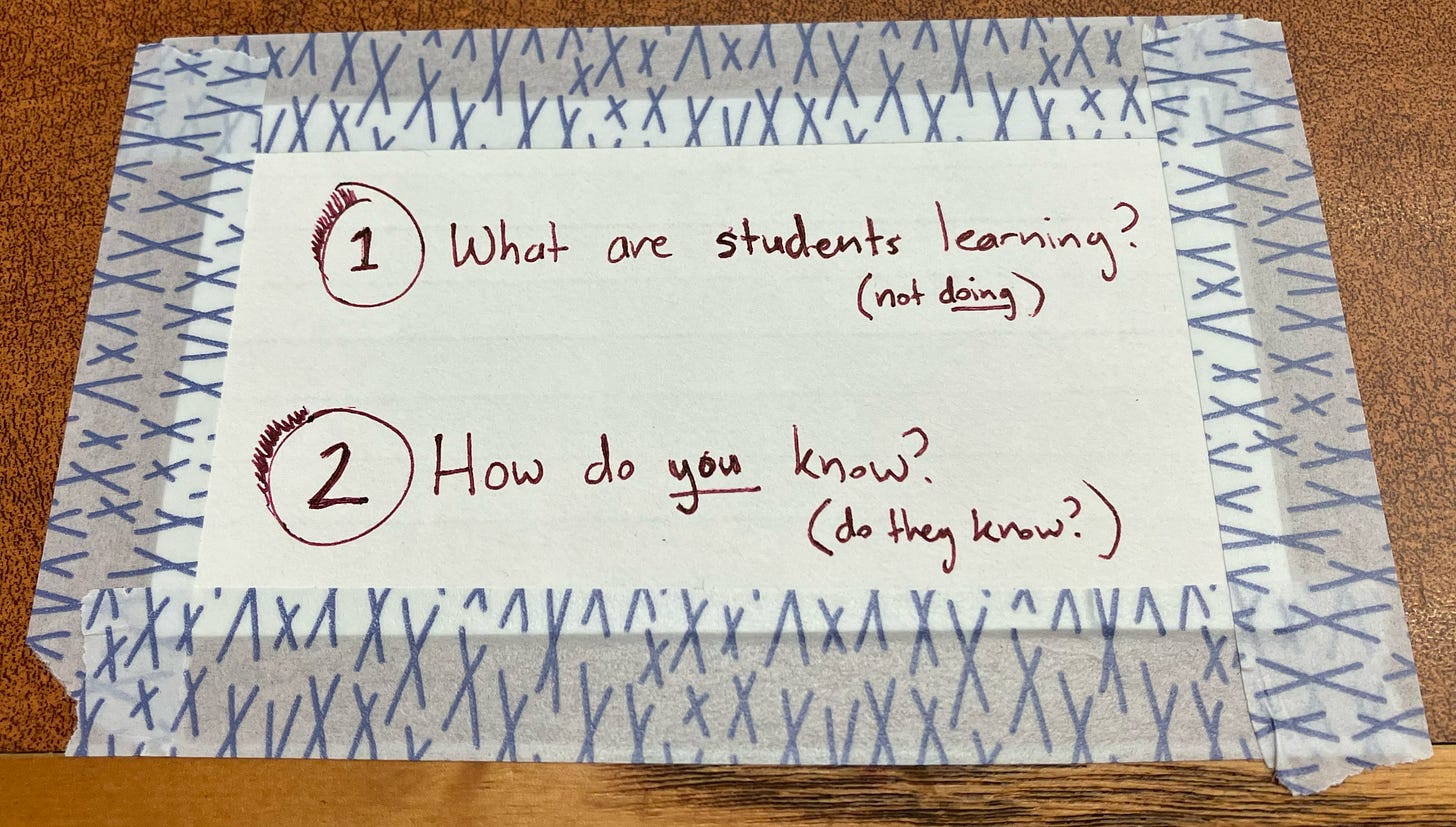 For a few years, I’ve had a simple, two-question placard affixed to my teaching desk: “[1] What are students learning and [2] How do you know?”